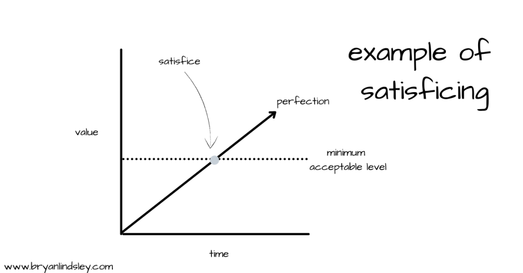 #37. Satisficing: Because humans have incomplete information (a far cry from the “perfect information” presumed by traditional economics), they make the best possible choice at any given time based on what satifies their goals to a suffient degree. Coined by Herbert Simon, the word satisfice is a portmanteau of satisfy and suffice.